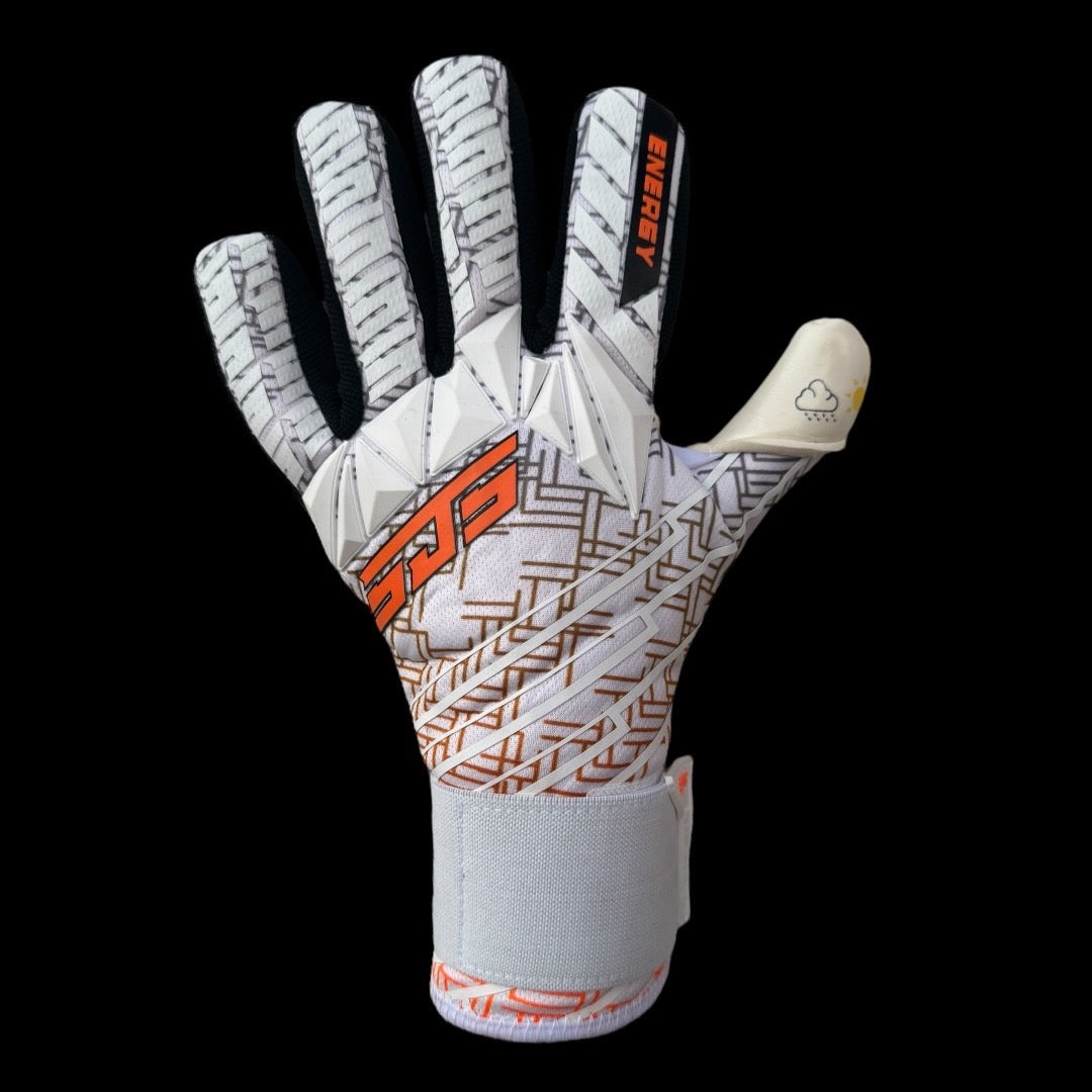 ENERGYはGKのパフォーマンス最大化を図るために設計された軽量モデルのグローブです。ネガティブカットを採用し、バックハンドにはジェルパンチングゾーンを搭載しています。3Dシリコンによるロゴとバックハンドの柄は洗礼されたデザインに。4mmジャーマンコンタクトラテックスでキャッチングを支え、伸縮素材のストラップを搭載することで自身で手首の固定度を変更できます。